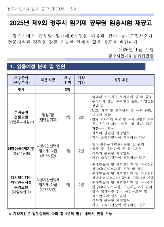 경주시 임기제 공무원 임용시험 재공고