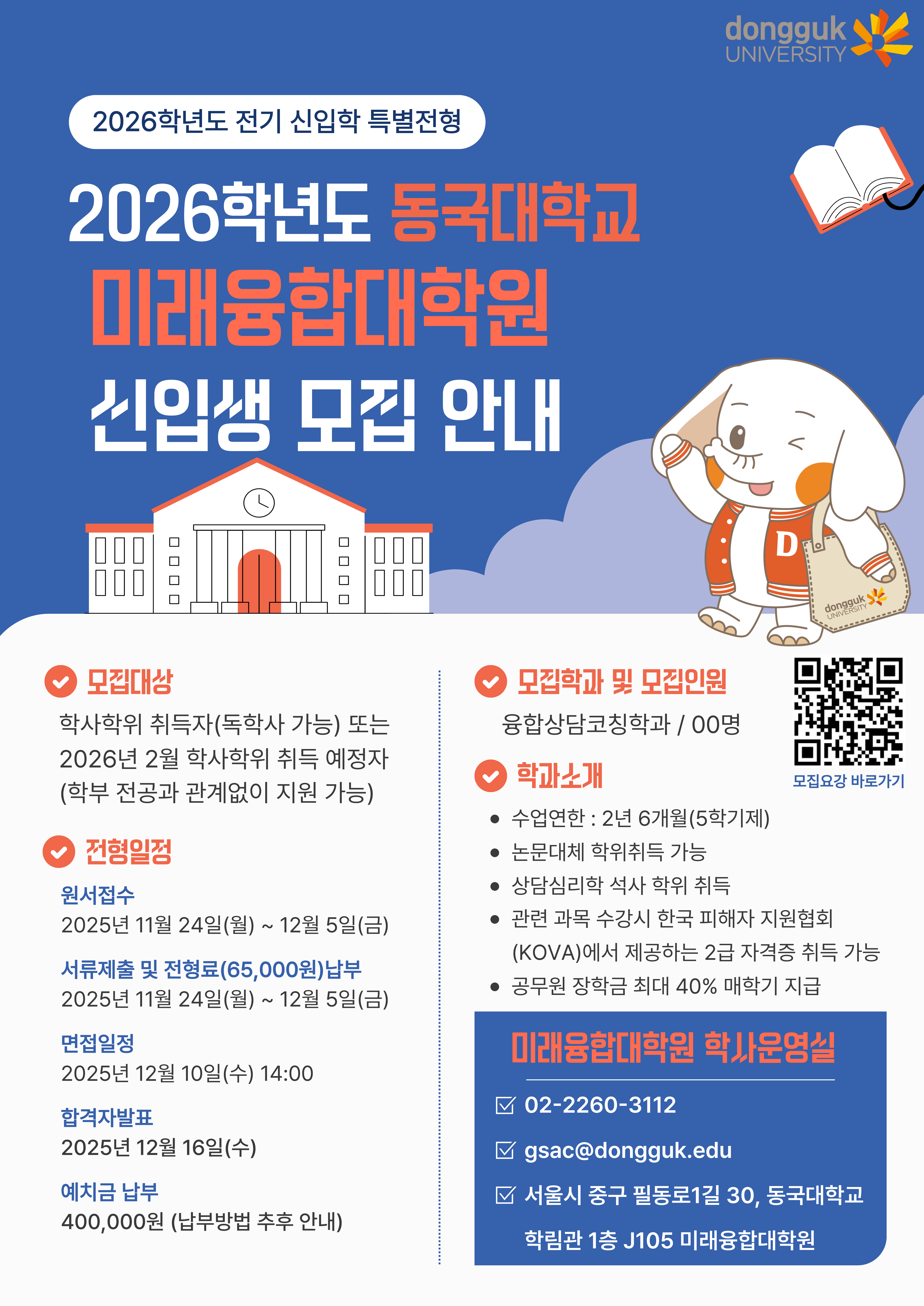 동국대학교 2026학년도 전기 [특별전형] 미래융합대학원 융합상담코칭학과 신입생 모집 안내