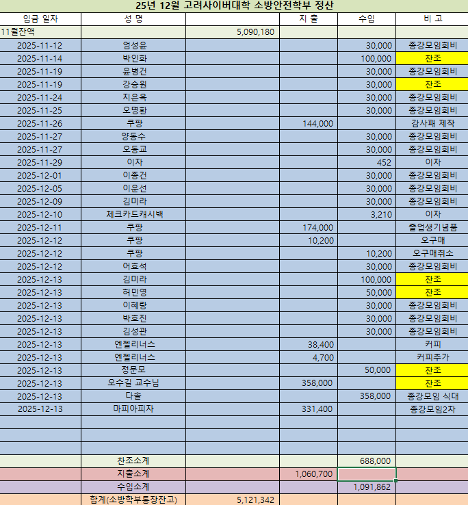 소방안전학부 2학기 종강모임 결산파일입니다.