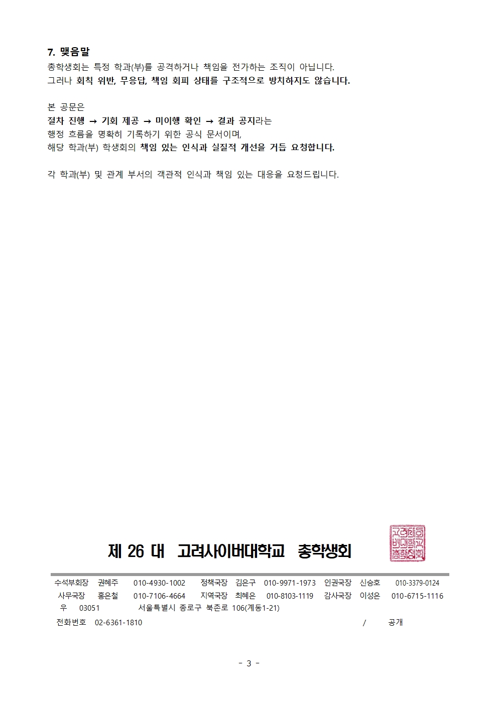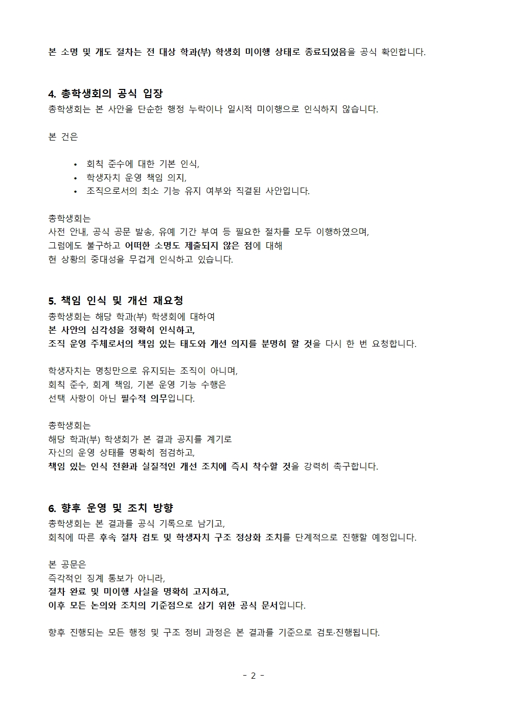 회칙준수 소명 및 개도요청(제25총학-30호)미이행에 따른 결과 공지