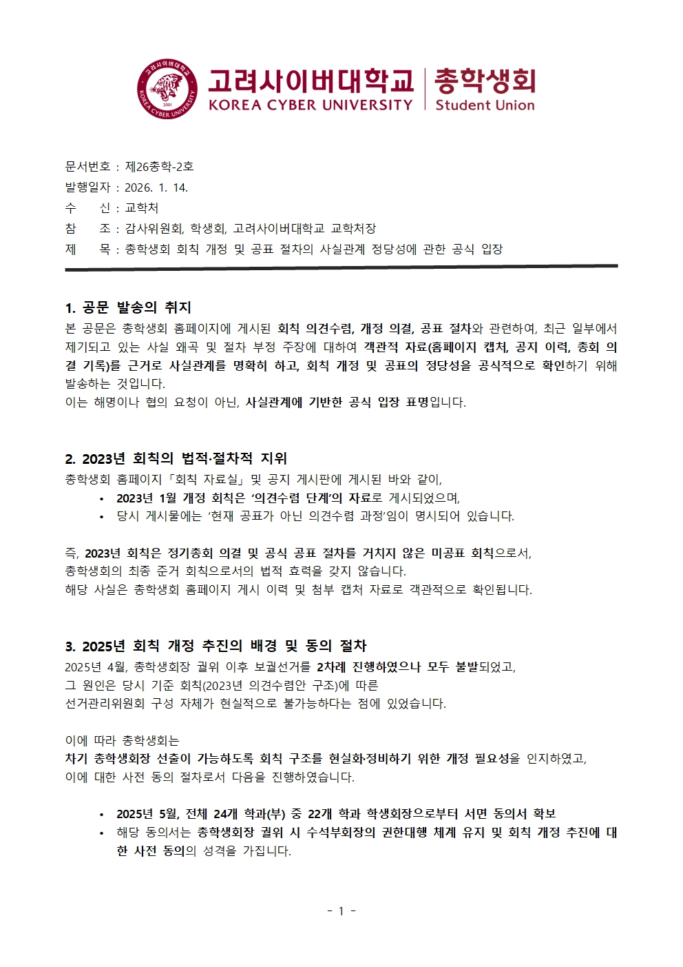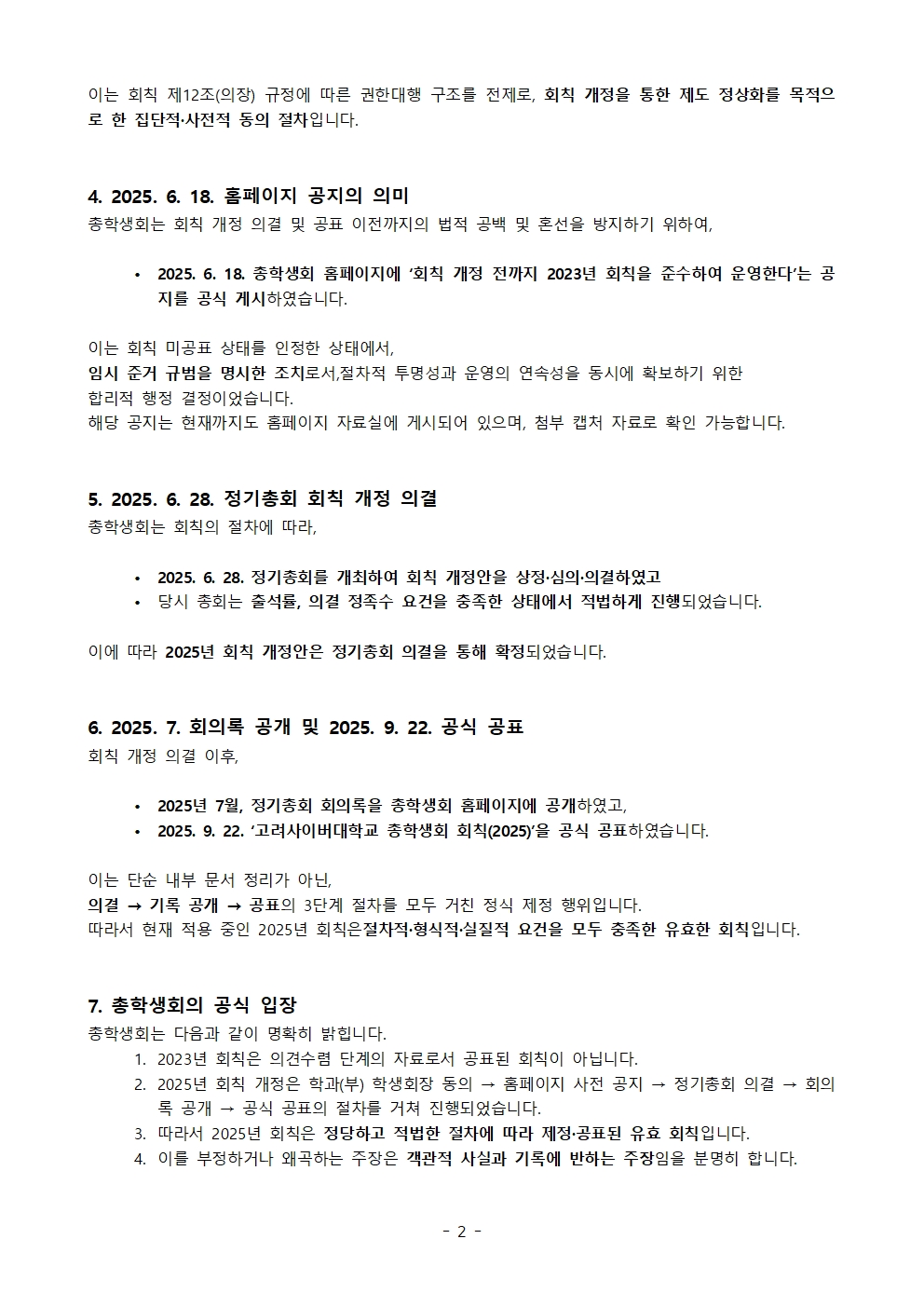 회칙 개정 및 공표 절차의 사실관계 정당성에 관한 공식 입장