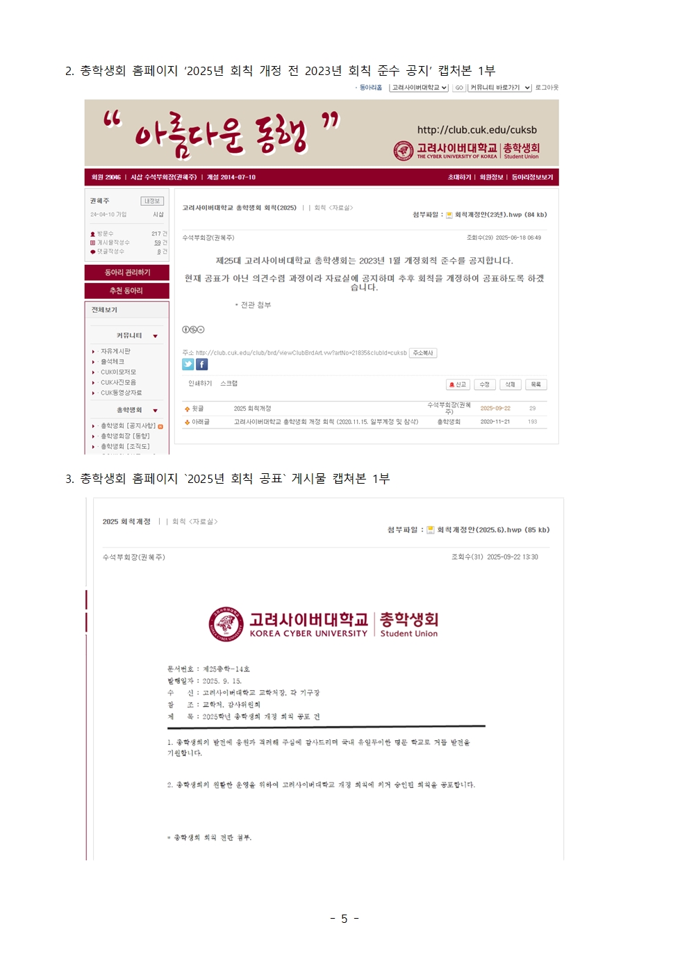 회칙준수 소명 및 개도요청(제25총학-30호)미이행에 따른 결과 공지