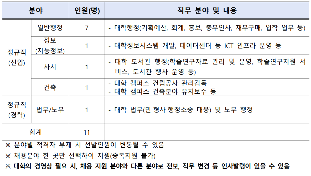 한국에너지공과대학교 정규직원 채용 공고