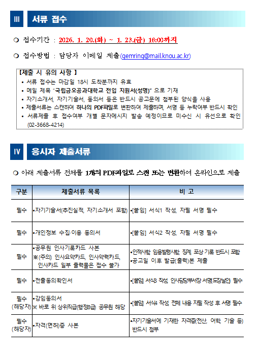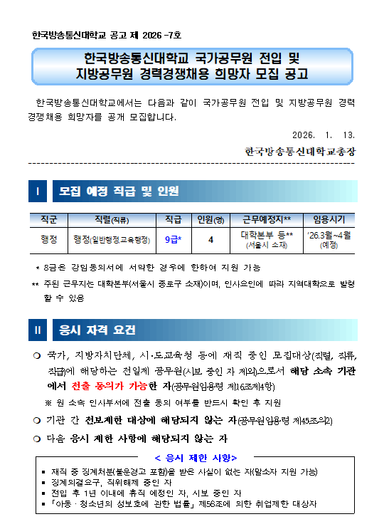 한국방송통신대학교 국가공무원(행정9급) 공개 모집 안내